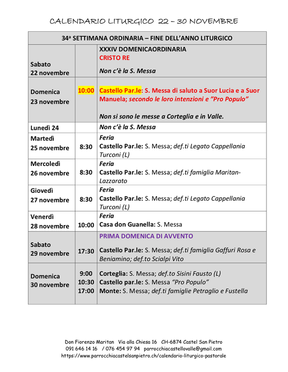 DON FIORENZO MARITAN - VIA ALLA CHIESA 16 - 6874 CASTEL S. PIETRO